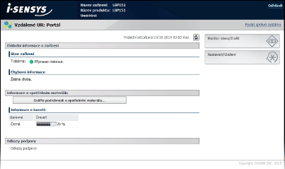 Můžete kontrolovat tiskové dokumenty, stav zařízení a zobrazit jeho nastavení.