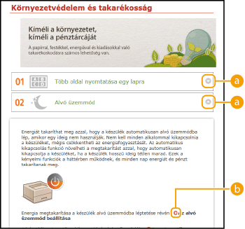A témakörök oldalai a készülék konfigurálására és használatára vonatkozó információkat tartalmaznak.