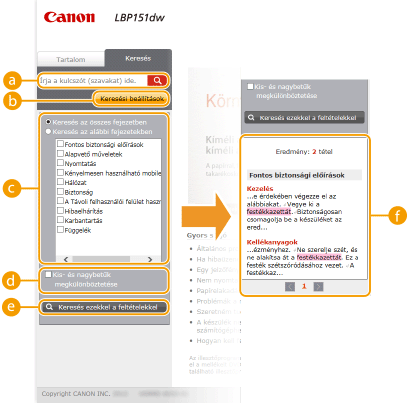 Kattintson az e-Kézikönyv megtekintésével, keresések végrehajtásával kapcsolatos és más információk megjelenítéséhez.
