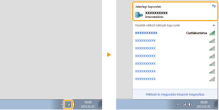 Ha a számítógépe vezeték nélküli helyi hálózathoz csatlakozik, akkor a csatlakoztatott vezeték nélküli helyi hálózati útválasztó SSID-azonosítójának megjelenítéséhez kattintson a