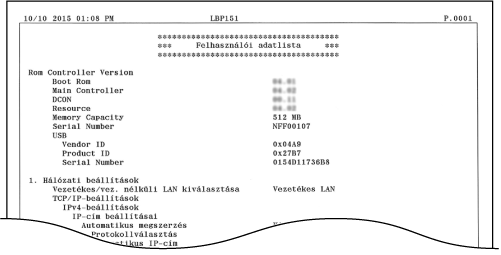Felhasználói adatlista nyomtatásához a készülék