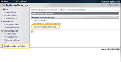 Az alaphelyzetbe állítás után a kulcspárt igénylő TLS titkosított kommunikáció nem lesz lehetséges. A TLS titkosított kommunikáció használatához állítson be egy másik kulcspárt, és engedélyezze újra a funkciót.