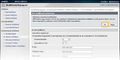 Kattintson az [OK] elemre.