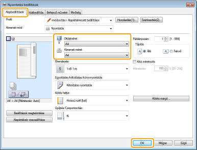 Válassza ki a papír méretét a [Kimeneti méret] mezőben