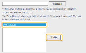 Válassza ki a törölni kívánt IP-címet, majd kattintson a [Törlés] lehetőségre.