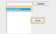 Válassza ki a törölni kívánt MAC-címet, majd kattintson a [Törlés] lehetőségre.