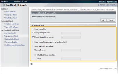 Jelölje be a [Proxy használata] jelölőnégyzetet, és adja meg a szükséges beállításokat.