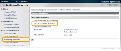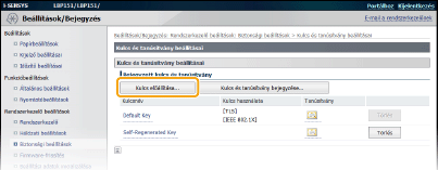 A kulcspár nem törölhető, ha éppen valamilyen célra használják, például amikor a [TLS] vagy az [IEEE 802.1X] elem jelenik meg a [Kulcs használata] részben. Ebben az esetben a kulcspár törlése előtt ki kell kapcsolni a funkciót vagy le kell cserélnie a kulcspárt.