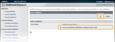 Válassza a [Kulcs és tanúsítvány aláírására vonatkozó kérés (CSR)] lehetőséget, és kattintson az [OK] gombra.