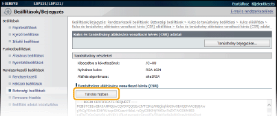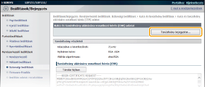 A tanúsítvány aláírási kérelem (CSR) által előállított kulcspár nem használható addig, amíg a tanúsítvány nincs bejegyezve. Miután a hitelesítésszolgáltató kiadta a digitális tanúsítványt, jegyezze be az alábbi eljárás szerint.