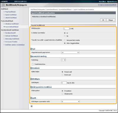 Felhasználóbeállítások 1/Felhasználóbeállítások 2/Felhasználóbeállítások 3
