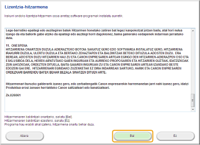 Irakurri lizentzia-hitzarmena eta sakatu [Bai] aukeran ados bazaude.