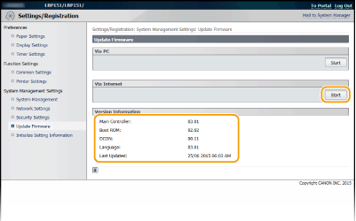 Egiaztatu makinaren firmware-a azken bertsioa den eta eguneratu Internet bidez.