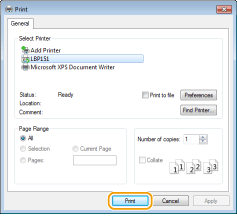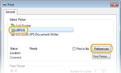 [Devices] [Print] erabiltzen ari zaren inprimagailua sakatu edo egin klik [Print] aukeranMetodo honen bidez inprimatzen baduzu, inprimatze-ezarpenen kopuru mugatu bat soilik egongo da erabilgarri.