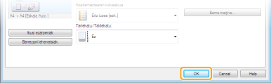 Irudiaren aurrebistan erraz eta intuitiboki zehatz ditzakezu orriaren diseinua, koadernatze-posizioa, etab. Informazio gehiago lortzeko, egin klik [Help] aukeran inprimagailu-kontrolatzailearen pantailan.