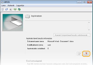 Inprimagailuaren egoera-leihoa bistaratzen da.
