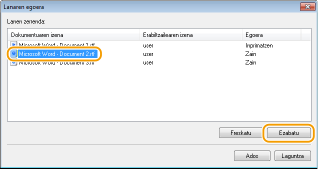 Hautatu bertan behera utzi nahi duzun dokumentua eta sakatu [Ezabatu].