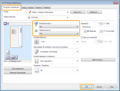 Aplikazio batzuetan handitze edo txikitzearen ezarpenek lehentasuna daukate, inprimagailu-kontrolatzailean dauden beste batzuen aurretik.