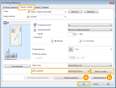 Ur-markak inprima ditzakezu dokumentuan, hala nola "KOPIA" edo "KONFIDENTZIALA".