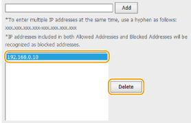 Hautatu ezabatu beharreko IP helbidea eta ondoren sakatu [Delete].