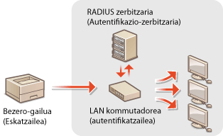 Makina 802.1X sarera konekta daiteke bezero-gailu gisa. 802.1X sareak normalean RADIUS zerbitzaria (autentifikazio-zerbitzaria), LAN kommutadorea (autentifikatzailea) eta autentifikazio-softwarea duten bezero-gailuak izaten ditu (eskatzaileak). Gailu bat 802.1X sarera konektatzen saiatzen bada, gailuak erabiltzaile-autentifikazio prozesua pasa beharko du konexioa erabiltzaile baimendu batek egin duela egiaztatzeko. Autentifikazio-informazioa RADIUS zerbitzari batera bidali eta bertan egiaztatzen da, eta zerbitzari horrek sarearekin komunikazioa ezartzea baimendu edo ukatu egiten du autentifikazioaren emaitzaren arabera. Autentifikazioak huts egiten badu, LAN kommutadoreak (edo sarbide-puntuak) kanpoko saretik egindako sarbidea blokeatzen du.