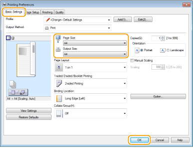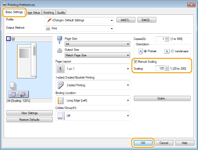 ![]() | You can make enlarged or reduced printouts by using a preset print ratio, such as A5 to A4, or a custom print ratio that you set in increments of 1%. |