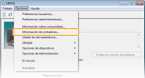 Puede consultar el número total de páginas que el equipo ha impreso revisando el contador de páginas en la Ventana Estado de la impresora.