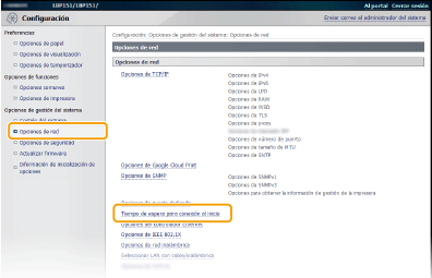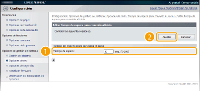 Antes de comenzar la comunicación con la red, introduzca el tiempo de espera y, a continuación, haga clic en [Correcto].