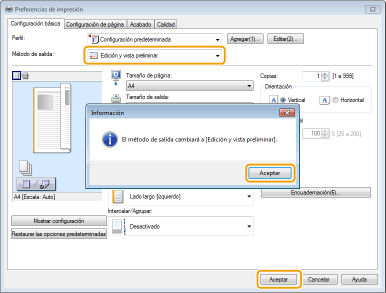 Seleccione [Edición y vista preliminar] en [Método de salida].
