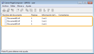 Los documentos se añaden a Canon PageComposer.