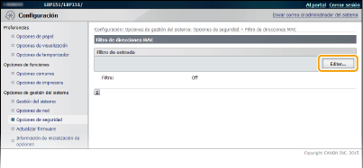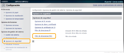 Haga clic en [Opciones de seguridad] [Filtro de direcciones MAC].