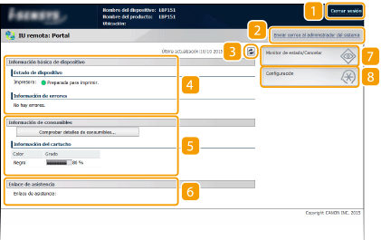 Muestra un enlace a la información de asistencia como se especifica en [Información del dispositivo] en [Gestión del sistema].
