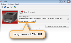 En la Ventana Estado de la impresora aparece un mensaje de error si se produce algún problema con el proceso de impresión, si el equipo no puede comunicarse o si algún otro problema impide un funcionamiento normal. Para obtener más información sobre los mensajes de error, consulte la siguiente lista.