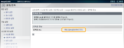 [등록용 URL]에 대해 표시된 URL 링크를 클릭합니다.