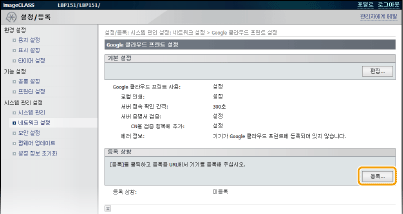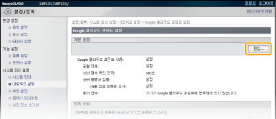Google 클라우드 프린트를 활성화해야 합니다. [편집]을 클릭하고 [Google 클라우드 프린트 사용] 확인란을 선택한 후 [OK]을 클릭합니다.
