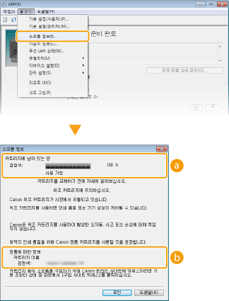 모트 UI의 포털 페이지(메인 페이지)에 있는 [소모품 정보]에서 토너 카트리지의 잔량을 확인할 수 있습니다. 포털 페이지(메인 페이지)
