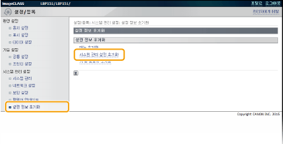 [시스템 관리 설정 초기화]를 클릭합니다.