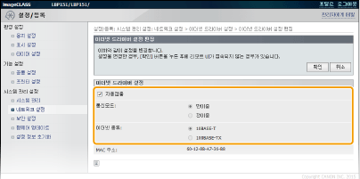 수동으로 이더넷 설정을 구성하려면 확인란 선택을 해제합니다. 자동으로 이더넷 설정을 탐지하려면 확인란을 선택합니다.