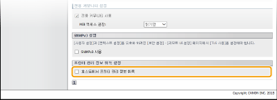 두 가지 버전의 SNMP를 모두 비활성화하면 프린터 드라이버를 통한 기기 정보 획득 등 기기의 일부 기능을 사용하지 못하게 됩니다.
