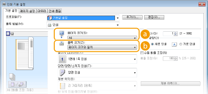 미리보기 이미지에서 직관적으로 페이지 레이아웃, 제본 위치 등을 쉽게 지정할 수 있습니다. 자세한 내용은 프린터 드라이버 화면의 [도움말]을 클릭하십시오.