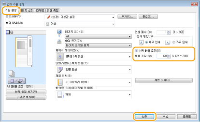 일부 응용 프로그램에서 확대/축소 설정은 프린터 드라이버보다 높은 우선 순위가 부여됩니다.