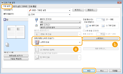 몇몇 용지 크기와 용지 종류에서는 소책자 인쇄가 불가능할 수 있습니다. 양면 인쇄가 가능한 용지는 소책자 인쇄에도 사용할 수 있습니다. 용지를 참조하십시오.