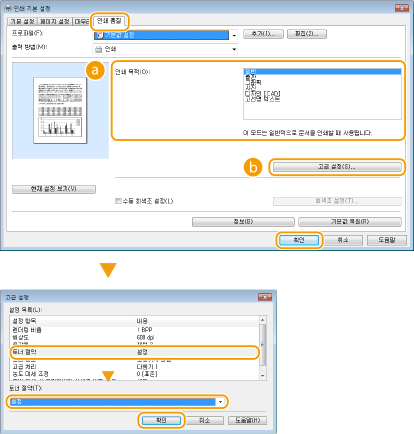 토너 절약 설정을 활성화할 경우 세밀한 선과 인쇄 농도가 옅은 부분이 흐릿해질 수 있습니다.