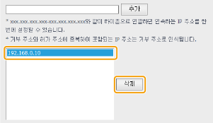 [등록할 주소] 텍스트 상자에 IP 주소(또는 IP 주소 범위)를 입력하고 [추가]를 클릭합니다.
