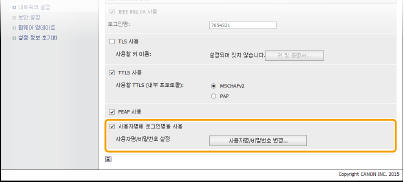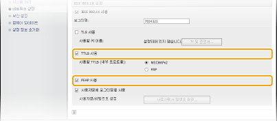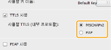 [TTLS 사용] 또는 [PEAP 사용] 확인란을 선택합니다.
