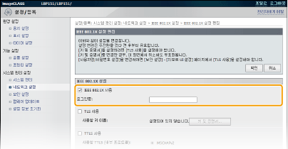 [IEEE 802.1X 설정]을 클릭합니다.