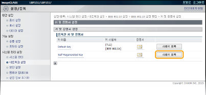 클라이언트 인증을 위해 사용하려는 키 쌍 오른쪽에서 [사용키 등록]을 클릭합니다.