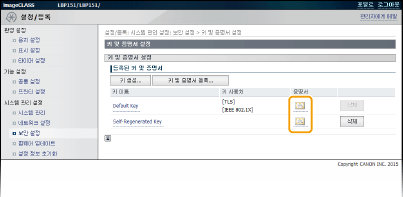 [키 및 증명서 설정] 또는 [CA 증명서 설정]을 클릭합니다.