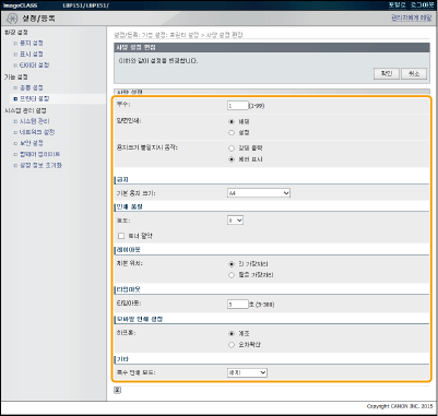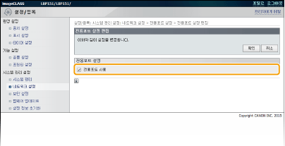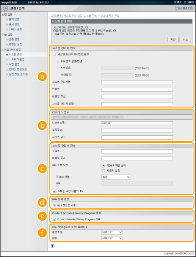 [시스템 관리 설정] 메뉴