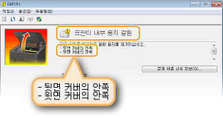 (경고) 표시등이 깜박이고 프린터 상태 창에 <프린터 내부 용지 걸림> 메시지 및 용지가 걸린 위치가 표시됩니다. 아래에 언급된 섹션에 설명된 절차에 따라 용지가 걸린 위치의 표시된 순서대로 용지 걸림을 제거하십시오. 시작하기 전에 중요 안전 지침에서 안전 지침을 꼼꼼히 읽으십시오.